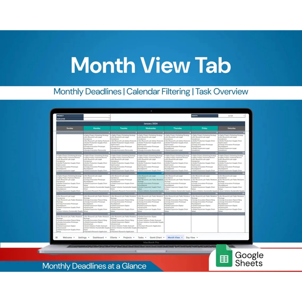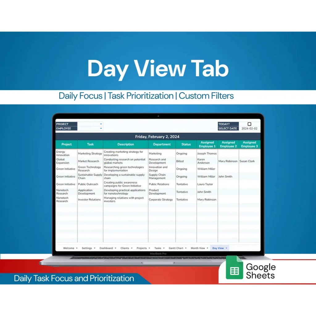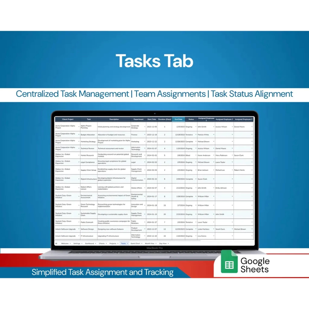 - Filter tasks by department, client, or employee for in-depth analysis.