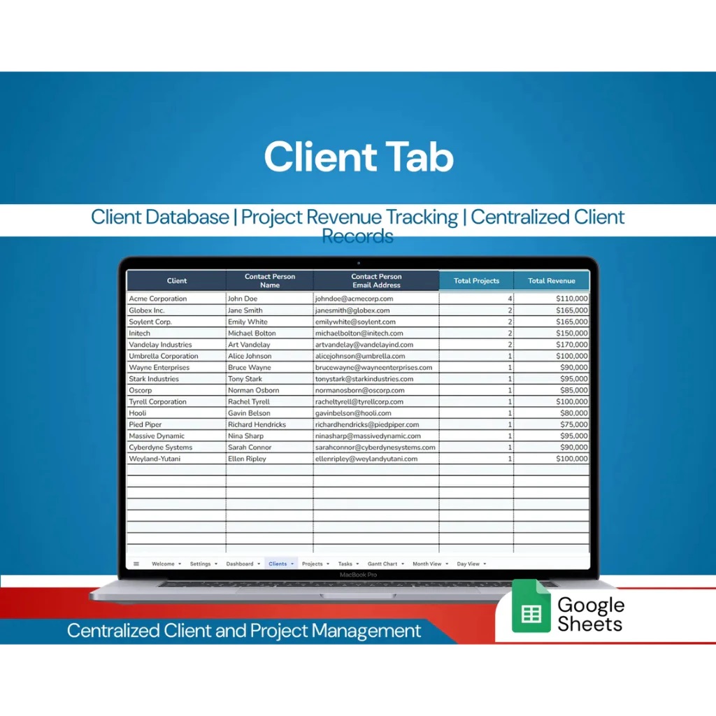 - Manage client information, project history, and revenue from a single place.